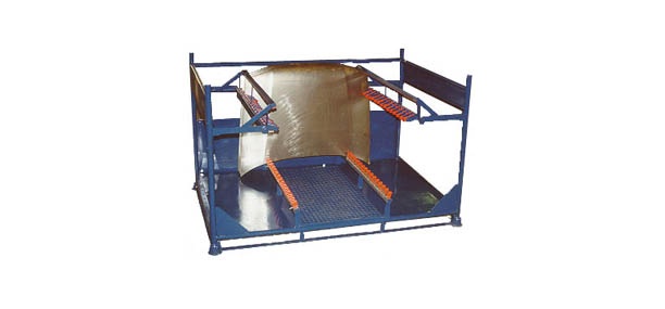 Estrutura tubular empilhável, para acondicionamento de capôs dianteiros, com pentes separadores acolchoados em Cushionbar inferiores e articuláveis um a um nas laterais, sistema de travamento superior.